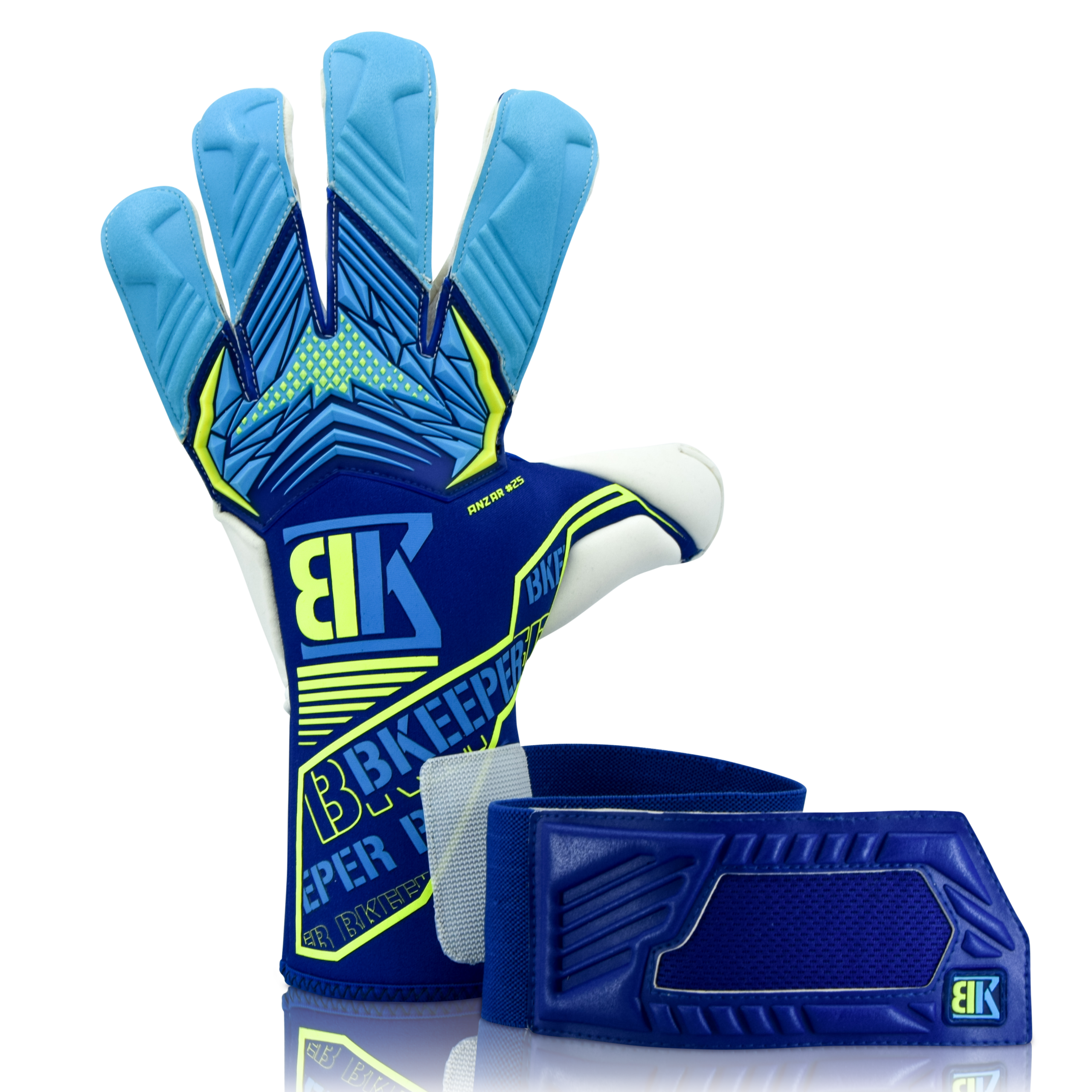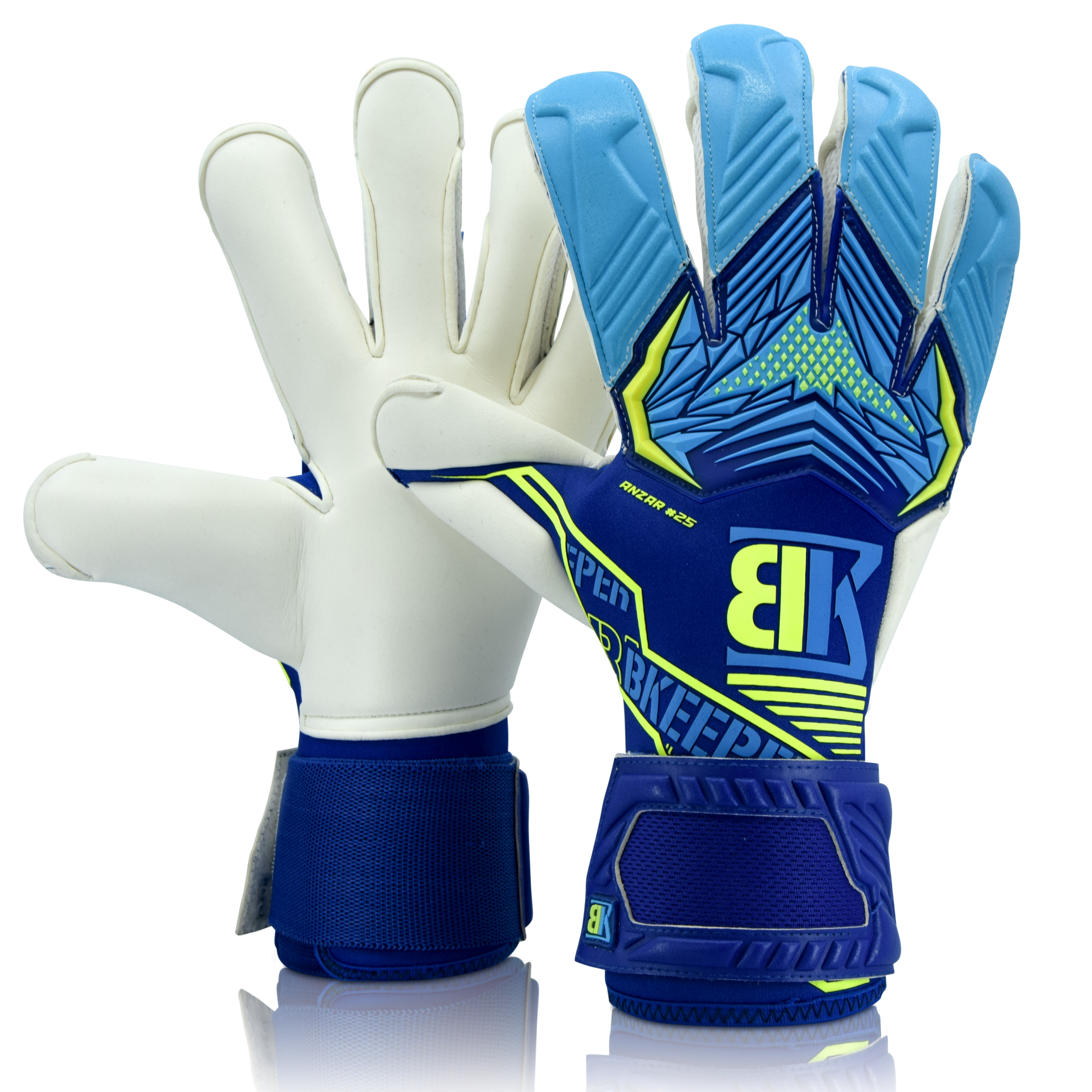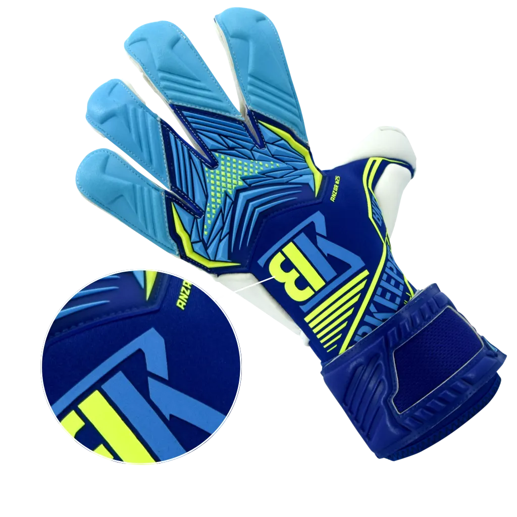 ANZAR #25 BLUE målvaktshandskar är utvecklade för hög prestanda med fokus på grepp, skydd och komfort. Med 4 mm Professional Next-latex får du ett exceptionellt grepp på alla typer av underlag, vilket ger trygg bollkontroll i varje situation.
